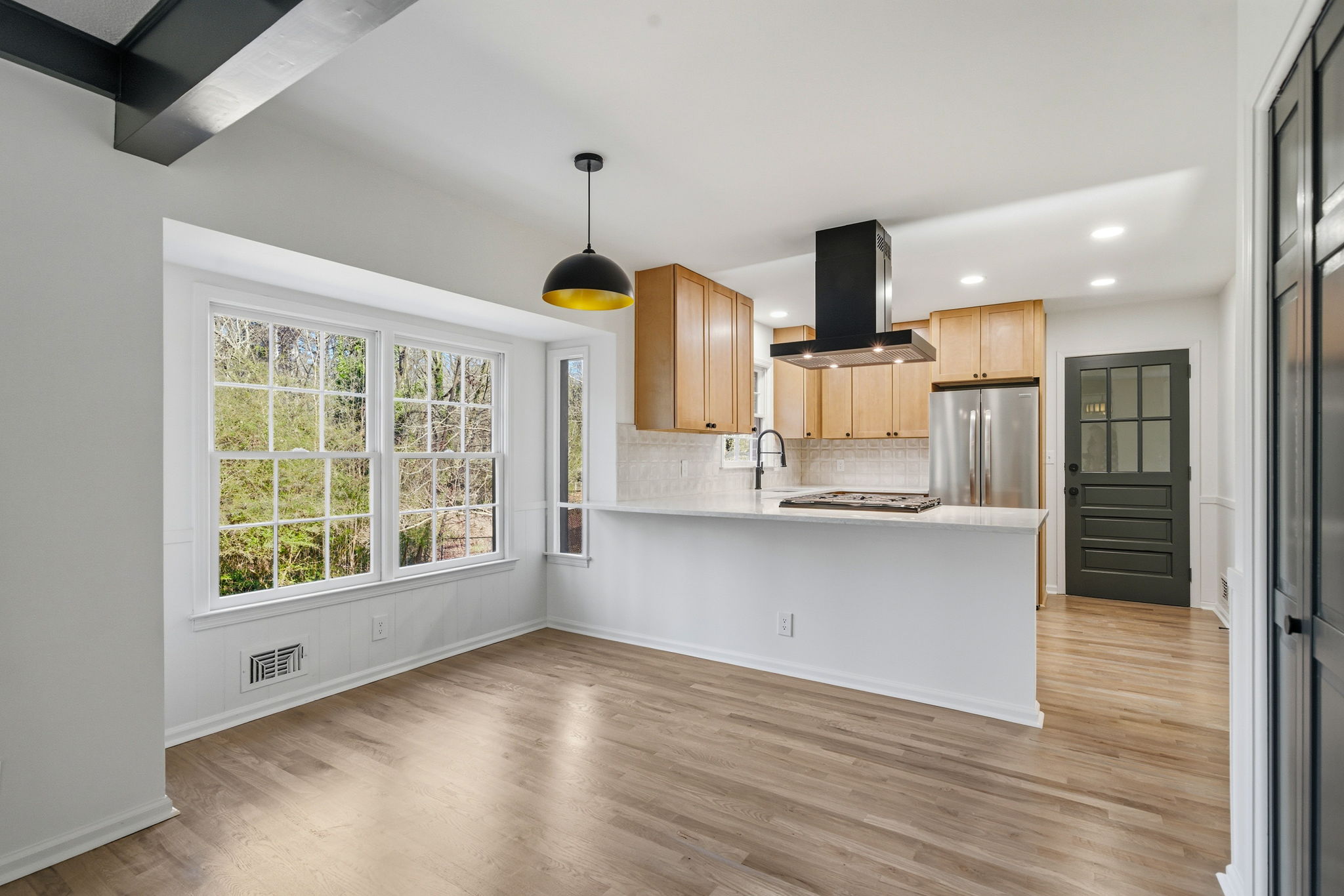 We removed that wall to create a more open connection between the kitchen, dining area, and den. It wasn’t about chasing trends—it was about improving how the space functions day to day. With that wall gone, we were able to rework the kitchen layout entirely.