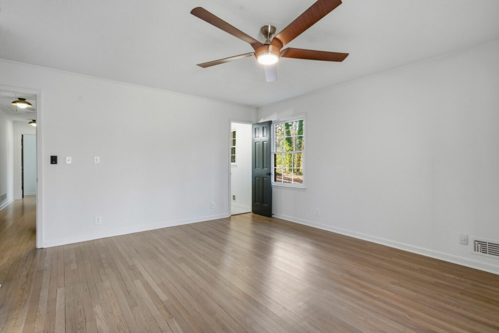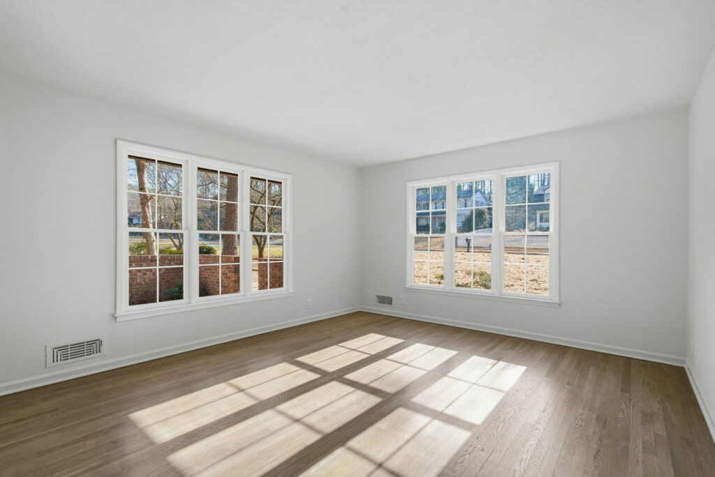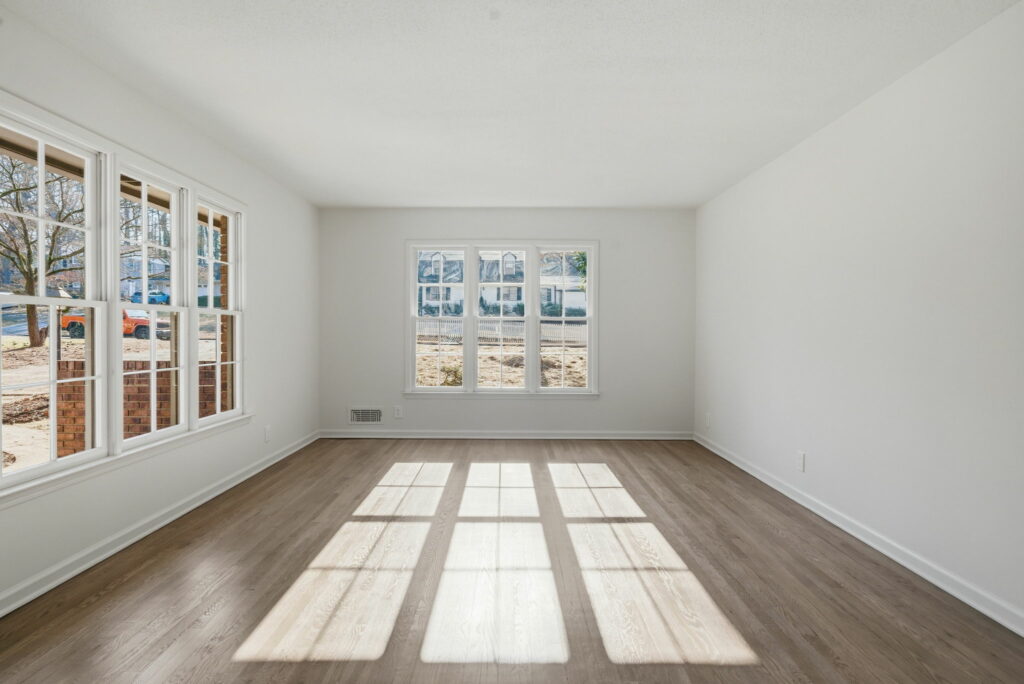 The flooring was one of the first major decisions. While there were some original hardwoods in parts of the home, the rest was a mix of dated materials that didn’t connect well. We removed everything and ran new hardwoods throughout the entire house. That single move changed how the home felt immediately. Continuous flooring has a way of making a space feel larger and more intentional without altering the footprint.